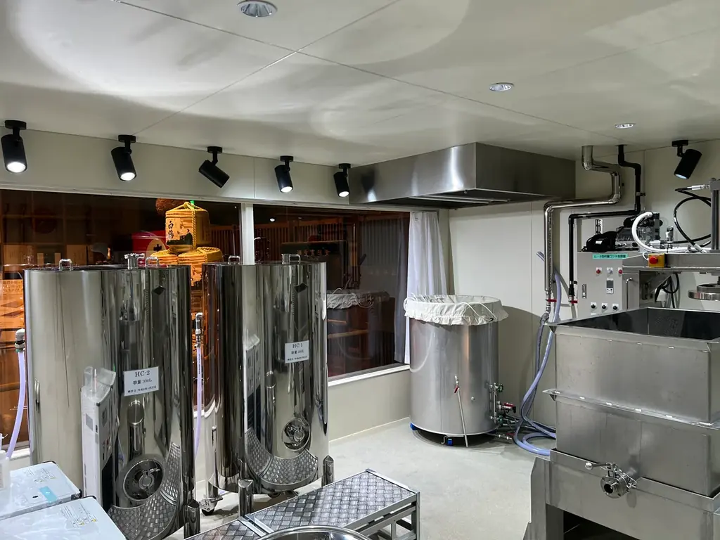 - 面積: 37㎡。洗米、浸漬、蒸米、製麹、発酵、搾り、ろ過、瓶詰めまでを行う設備を導入。