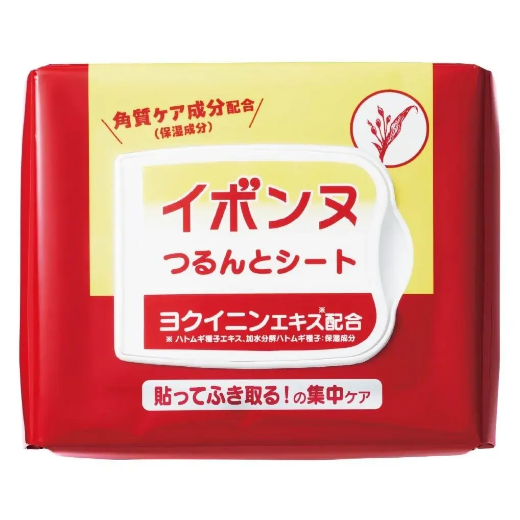 「イボンヌ つるんとシート」は大きめの丸形トナーパッドにエッセンスをたっぷり含ませ、肌に密着させて約3分間放置した後、パッドで軽くふきとるだけで角質ケアが完了する設計です。1枚ずつ取り出しやすいボックスタイプで、60枚入の大容量パックとなっています。