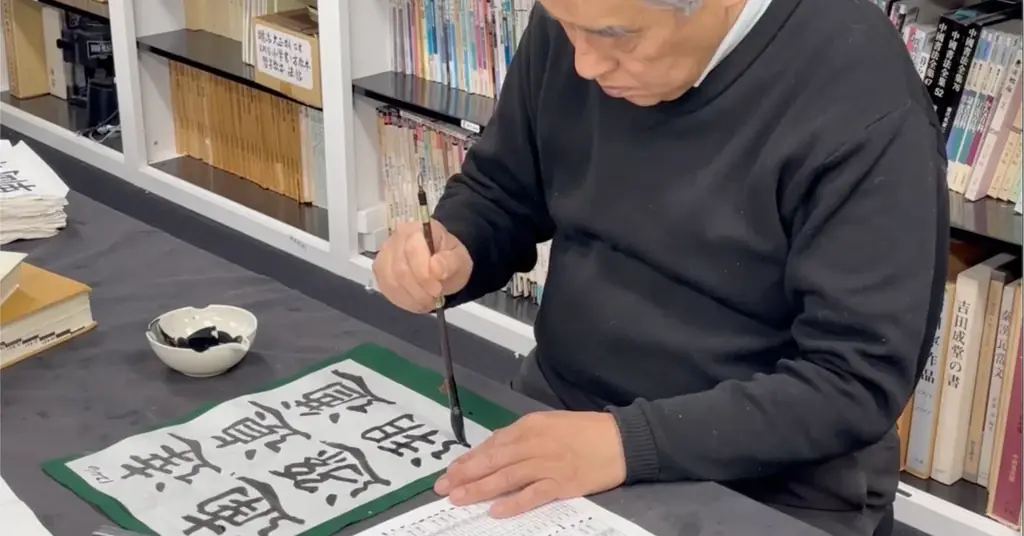 揮毫を担当した大庭紀霽(おおば きせい)氏は1958年福岡県北九州市生まれ。幼少期から書と美術に親しみ、書を故・大津賀真龍氏に師事しました。現在は造形芸術学校「d³ Art Studio」主宰、北九州を拠点に書家、タイポグラファー、グラフィックデザイナーとして活動し、筆跡鑑定業務にも携わっています。