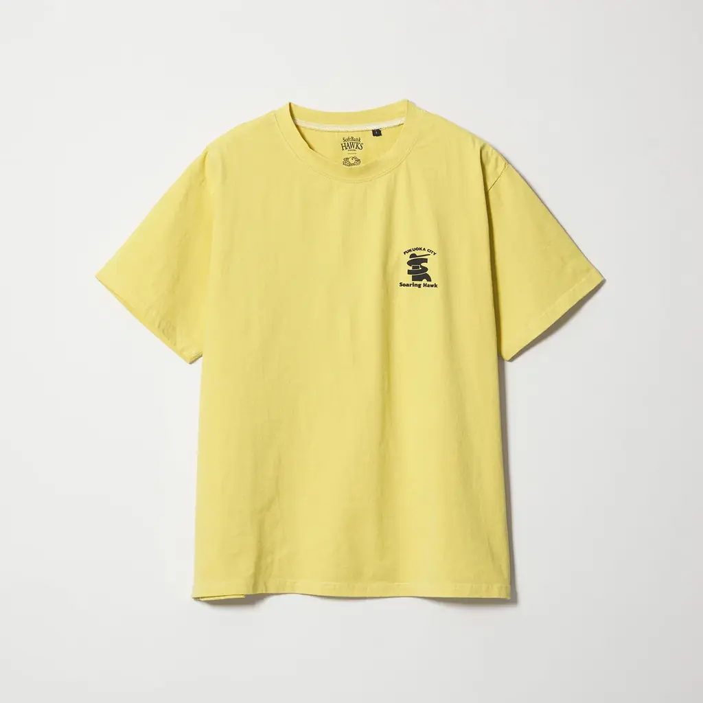 Tシャツは全5種類で、いずれも価格は6,930円(税込)です。デザインは「ホームタウン」「エンブレム」「マスコット」に加え、HAWKS STORE限定の2パターン(集合柄、投球)を含みます。
