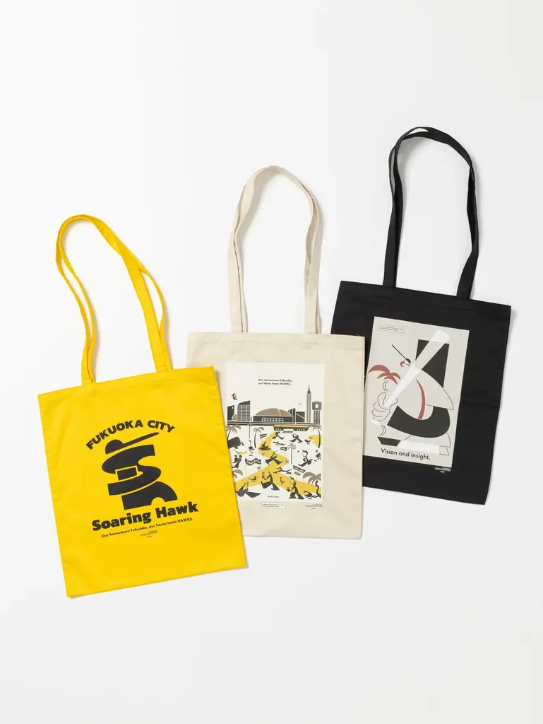 トートバッグは3種類で価格は3,300円(税込)です。A4サイズに対応し、応援グッズや日用品を収納できる実用性を備えています。