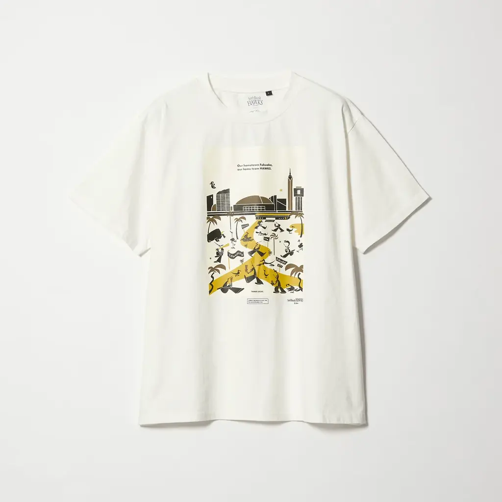 今回のコレクションは「ホームタウン」「エンブレム」「マスコット」をテーマに、taiki kishimoto氏の豊かな色彩感覚とポップアートの世界観でホークスの象徴を再解釈しています。球場での観戦はもちろん、街中のカジュアルな着こなしでも取り入れやすいデザインが特徴です。