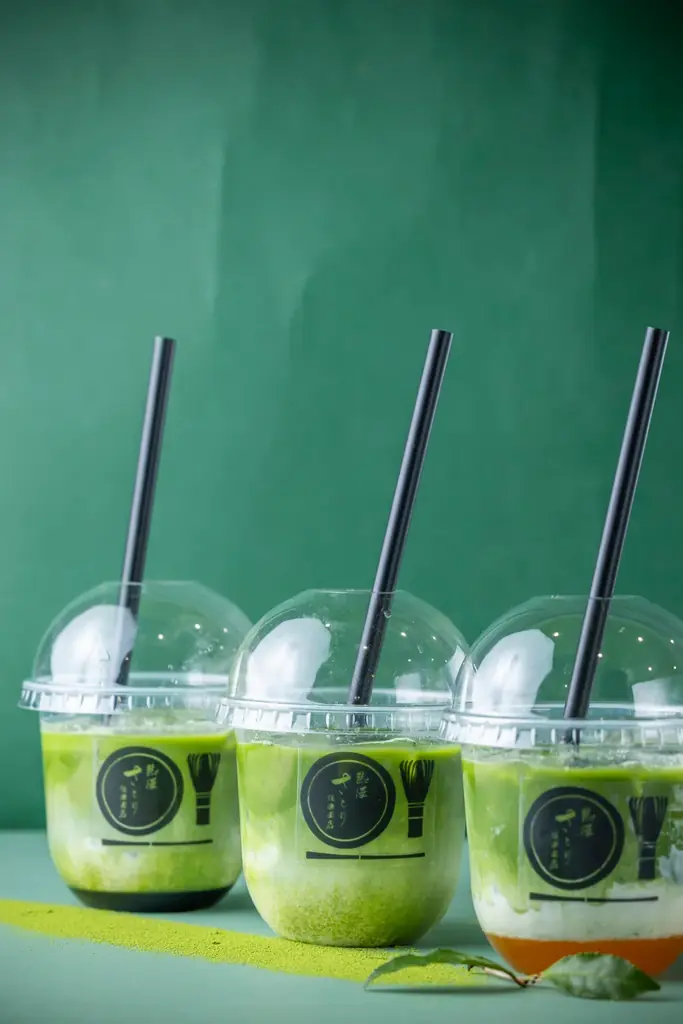 - 使用する抹茶は静岡県産のオリジナルブレンド「さとり」。