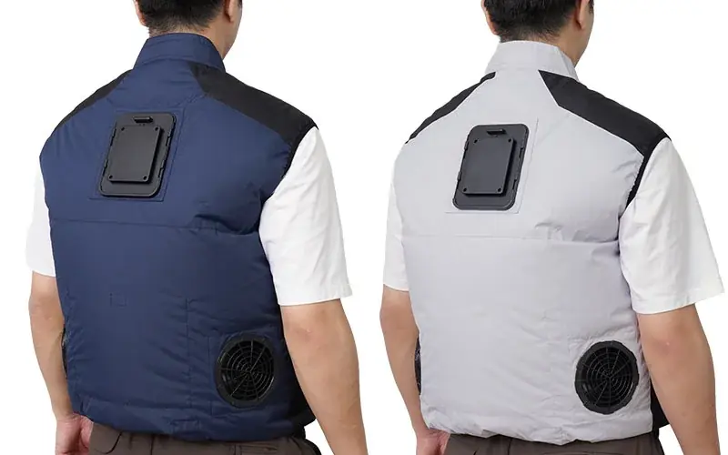 ファンの性能は1基あたり最大約43L/秒の風量まで対応し(PD給電時)、服内の空気循環を強化しています。ペルチェ冷却プレートの温度性能は試験環境温度35℃において以下の通り報告されています:ペルチェのみで環境温度より-15〜-19℃、ペルチェ+ファン強で-10〜-15℃、弱で-5〜-10℃。