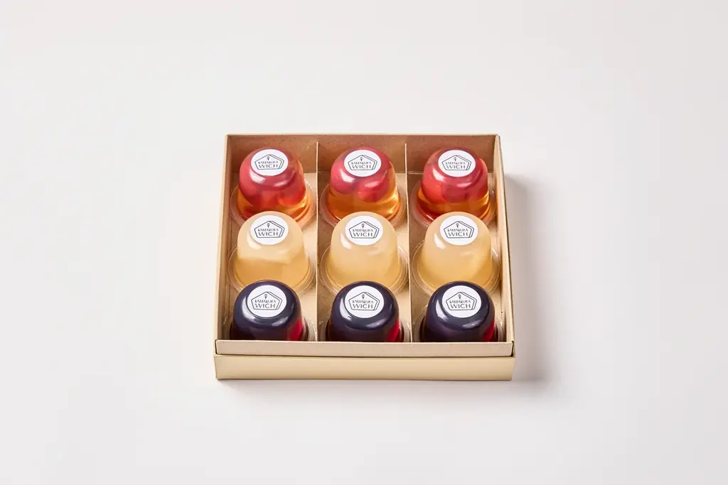 『ジュレ・ド・フリュイ』は単品販売に加え、複数個入りのギフト仕様が用意されています。選びやすいサイズ展開と鎌倉ウィッチとの詰合せセットがラインナップされています。