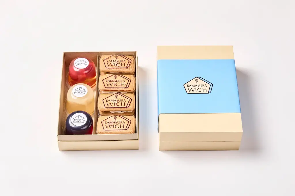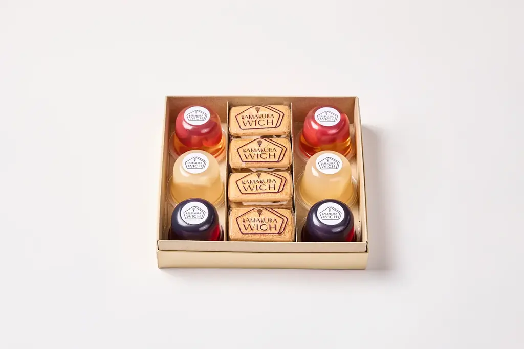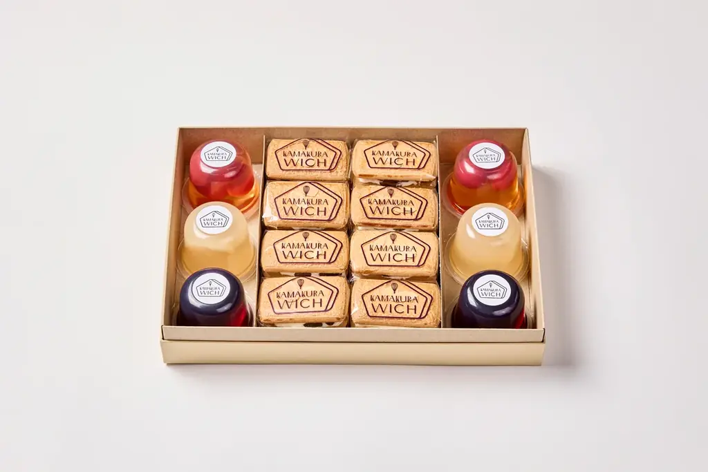 ジュレだけの詰合せに加え、鎌倉ウィッチ(ラムレーズン)との組合せセットは、ジュレの爽やかさとビスケット系の焼き菓子の満足感を同時に味わえる構成です。贈答用として開封後に異なる食感を楽しめるのが利点です。