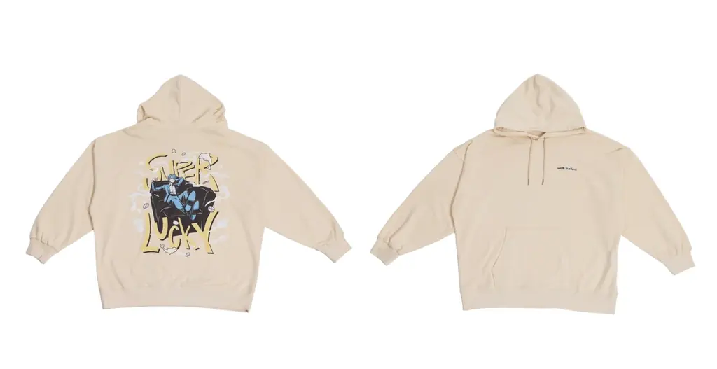 | 主な商品 | SUPER LUCKY BIG HOODIE(Charcoal Gray / Ivory 各F ¥14,000)、TOTE BAG ¥4,500、ACRYLIC MIRROR KEYCHAIN ¥1,500 |