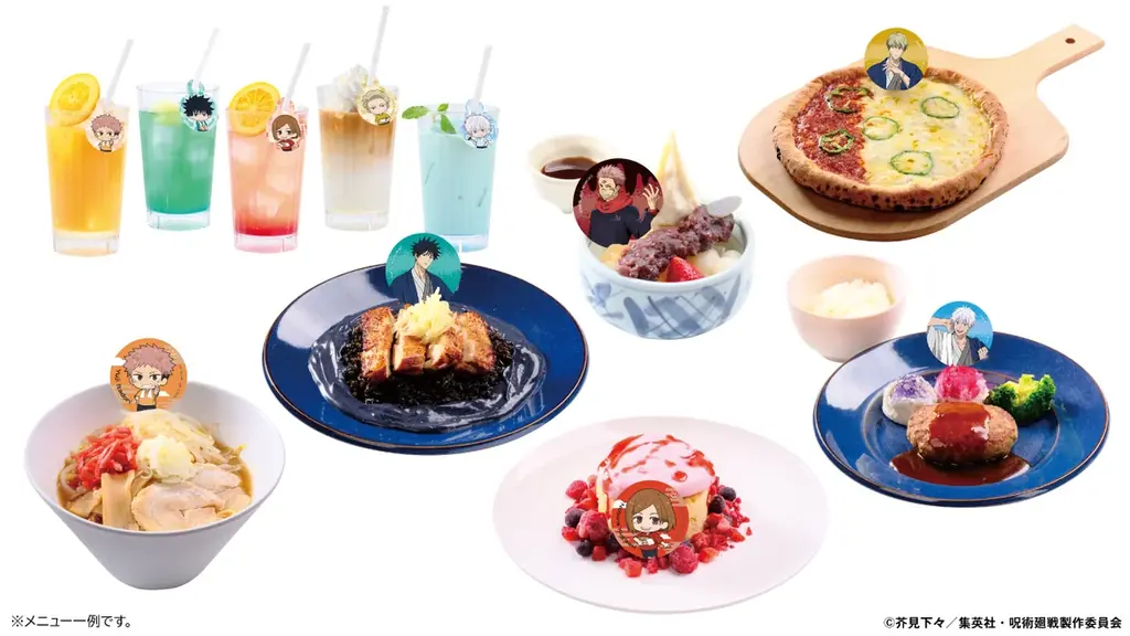 会期中は呪術師たちをイメージしたコラボメニューを提供し、注文者にはコースターを配布します。コースターは[A]等身イラスト5種(ランダム配布)または[B]ミニキャラ8種(ランダム配布)のいずれかを選べます。