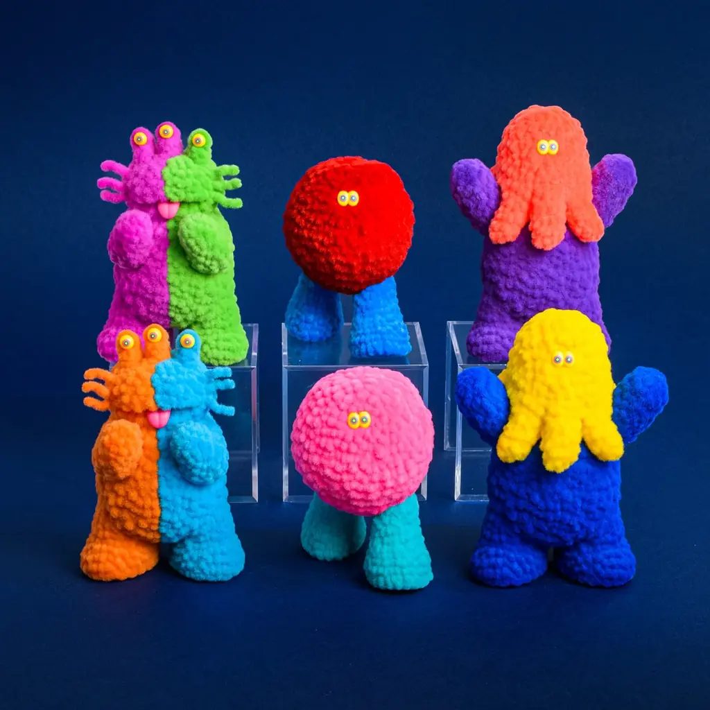 「モールミュータント」は、もともとフジサキタクマ氏が表現するモール(パイプクリーナー)の表現を生かしたキャラクター群に端を発します。代表的なキャラクターであるモールエイリアンは、カラフルな長い毛足と、そこから覗くきょとんとした目が特徴です。