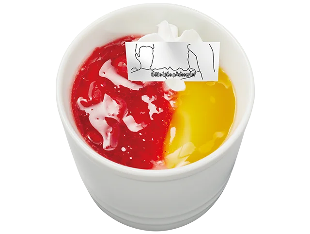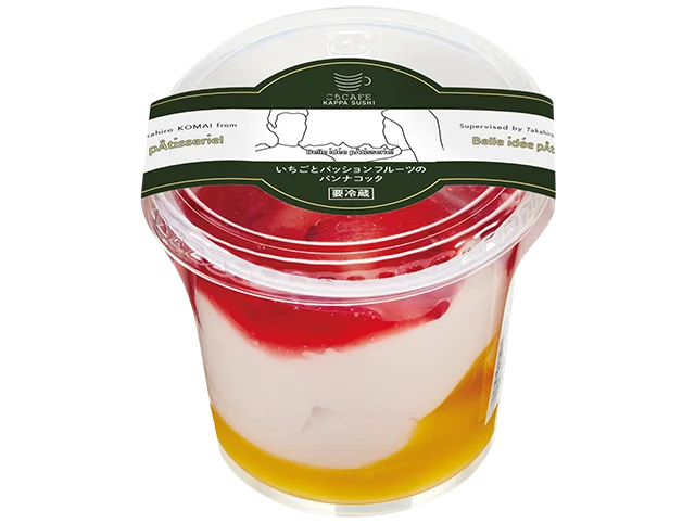 構成:駒居シェフ監修のカスタードアイス(バニラビーンズ入り)と、かっぱ寿司が店舗で仕込むプレミアムプリンを贅沢に重ねています。さらにカラメルソース、パッションソース、ストロベリーソースが華やかに彩ります。食感のアクセントとしていちごとグラノーラを組み合わせ、味と食感の変化を楽しめるよう設計されています。