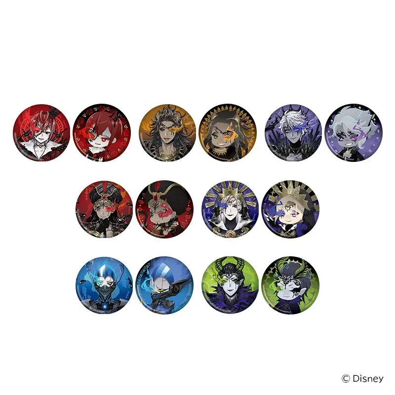 全7種。ゲーム内素材を使用したオーバーブロットver.の缶バッジセット。材質:ブリキ、紙、PET、鉄。サイズ:約φ57mm。ご購入制限:お一人様各3点まで。