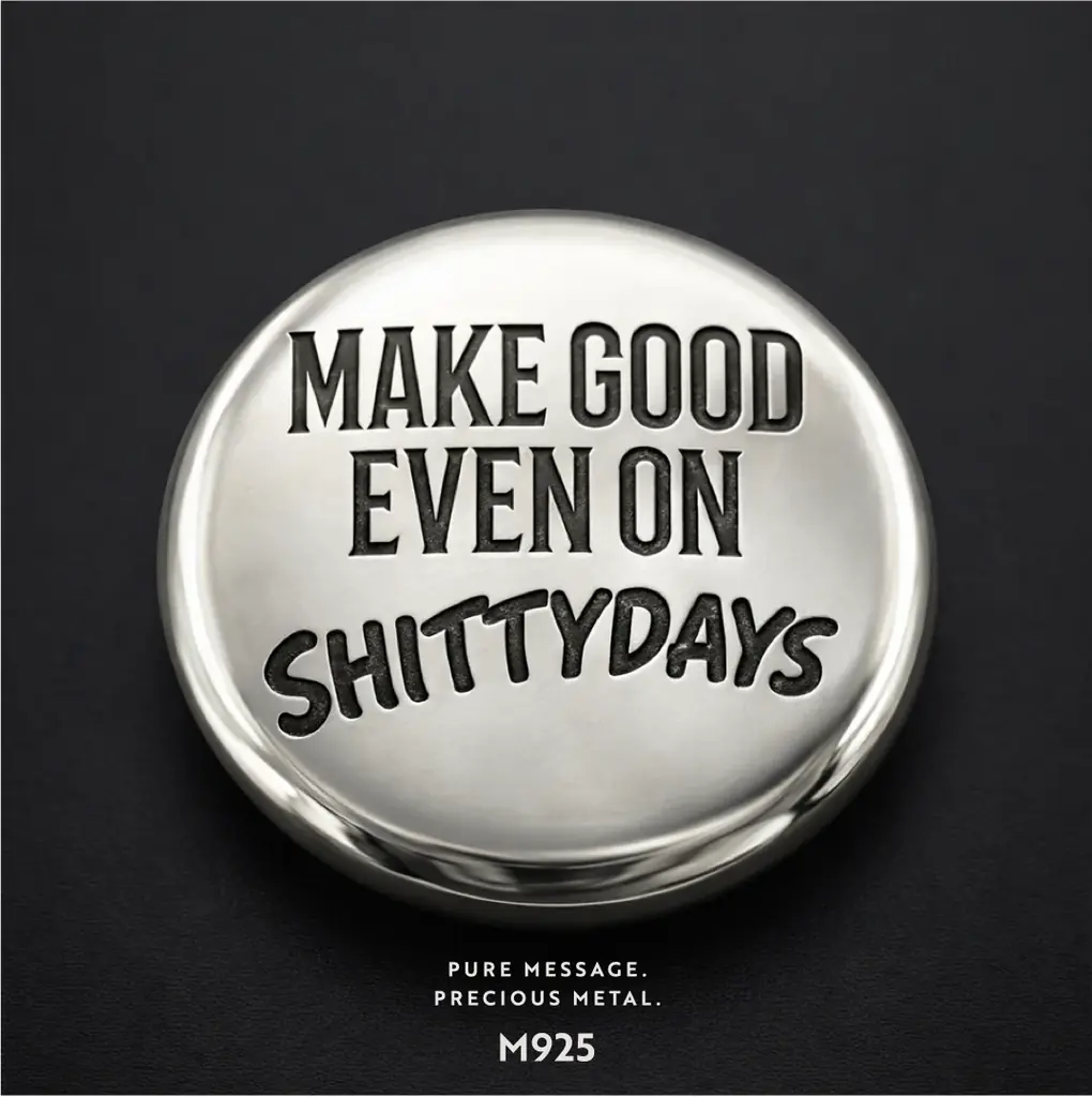 今回のデザインは、原作中の名台詞「クソみたいな日にいいもんつくるのがプロだ」を出発点としている。コピーライターでありM925を主宰する中川諒が、原作者かっぴー氏と協議のうえ、英語表現として“MAKE GOOD EVEN ON SHITTY DAYS”というオリジナルコピーへと書き直し、これをバッジの主題として採用した。