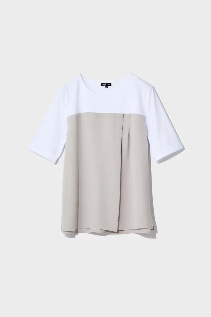- カットソー 12,100円:異素材ドッキングで滑らかな肌離れを実現。ブラウスのようなきれいめ印象も併せ持つ。