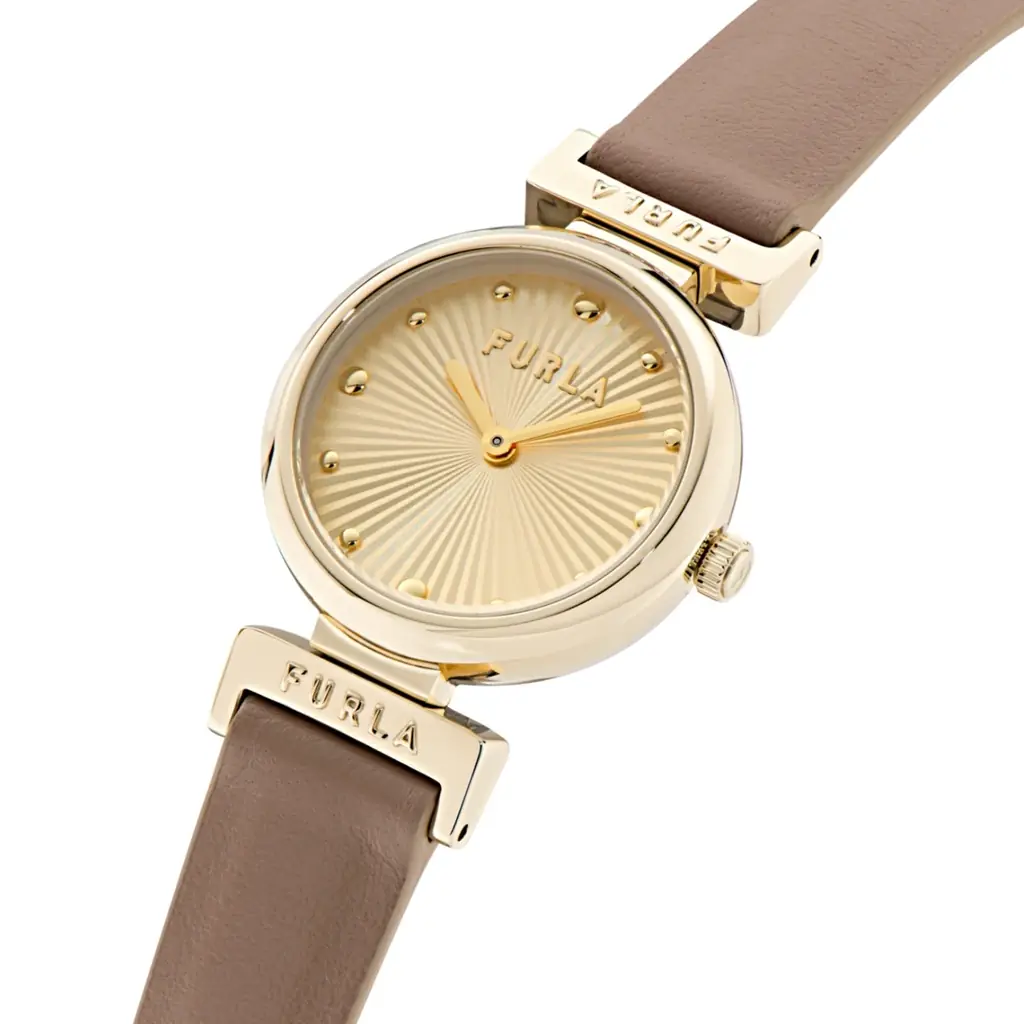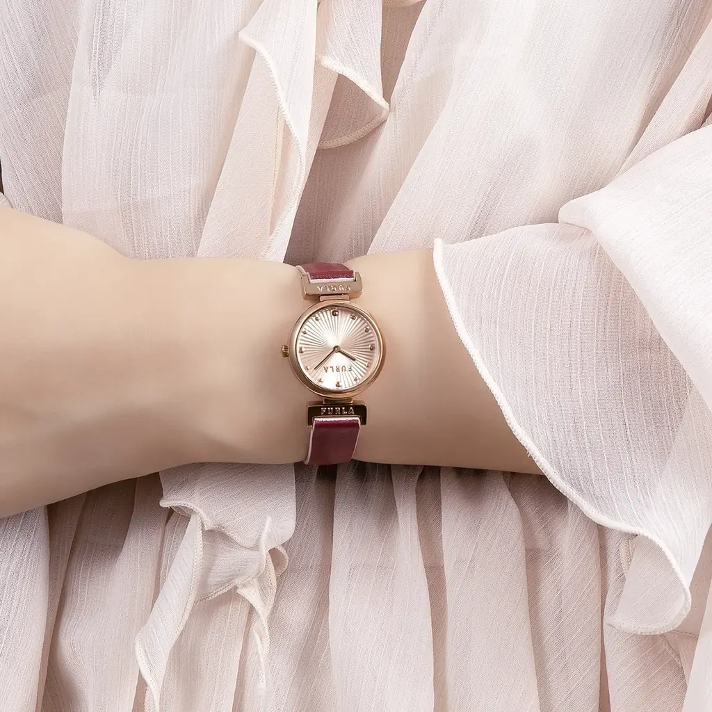 デザイン面では、FURLAらしいミニマルで洗練された見え方を保ちながら、リバーシブルという機能を違和感なく内包しています。25mmという小ぶりなケースとギヨシェ加工の文字盤が、上品さを静かに演出します。