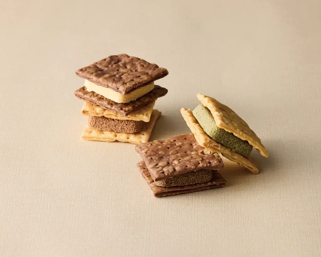 ショコラパイサンドはサクサクのパイ生地に焼きチョコレートをサンドした焼き菓子です。食感の軽さとショコラのコクを両立させています。