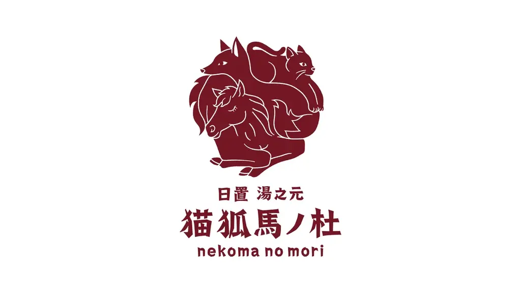 本施設の名称「猫狐馬ノ杜」は、湯之元にまつわる三つの動物と神聖な集いの場を掛け合わせたものだ。名称およびロゴは地域の歴史・伝承と結びつけられている。