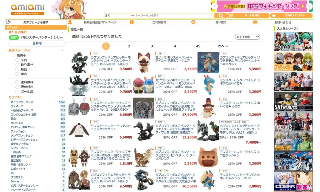 - 製品タイトル「るかっぷ モンスターハンター アイルー」で検索、または直リンクを利用して該当ページを開く。