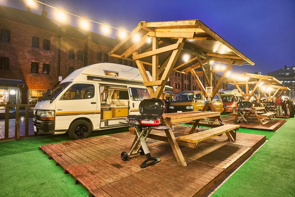 4/24〜5/10に横浜赤レンガ倉庫イベント広場で開催。基本は11:00〜21:00(初日は17:00開始)。入場無料だがBBQやキャンピングカーは有料で予約が必要。