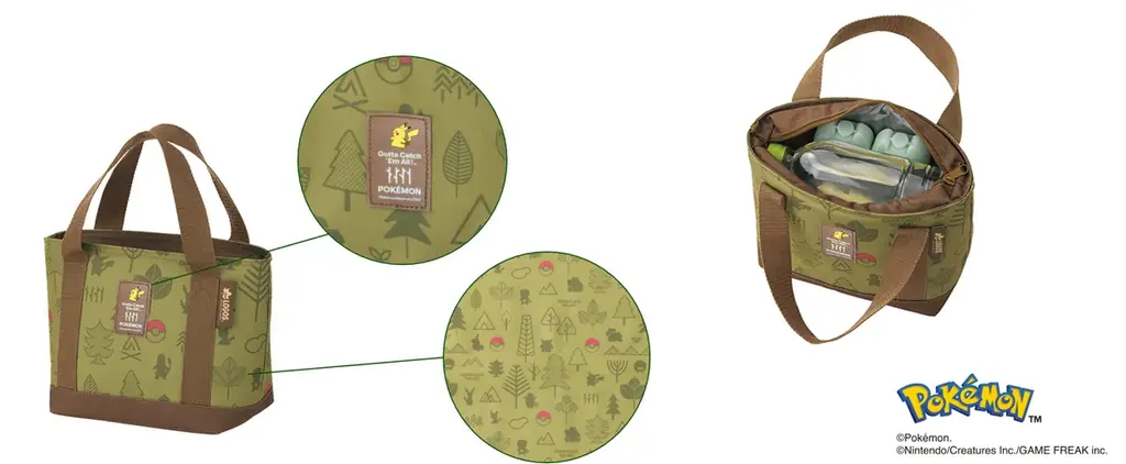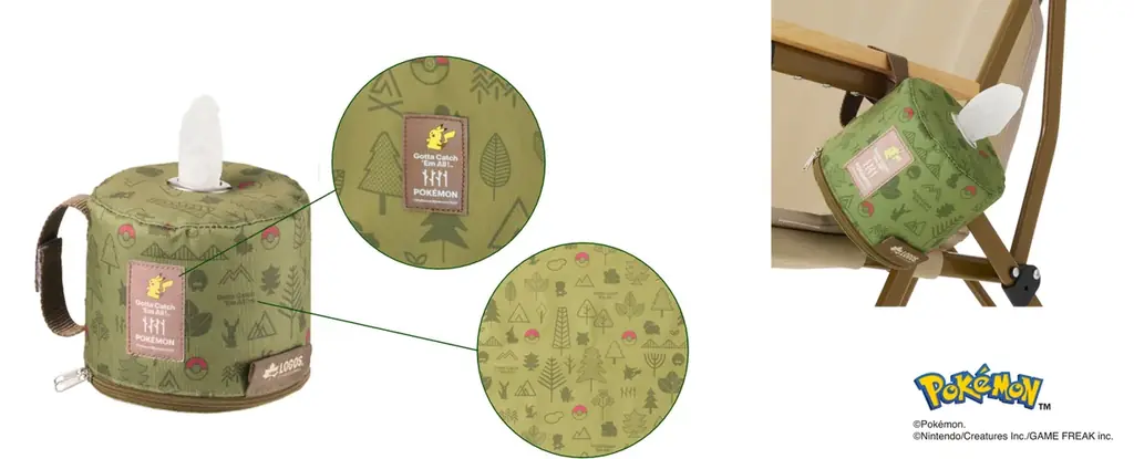 本稿で取り上げる3アイテムは、いずれも屋外での利便性とデザイン性を両立させた製品です。自然モチーフの中にポケモンたちのシルエットを配した遊び心あるビジュアルに、ピカチュウのネームタグがワンポイントとして配されています。