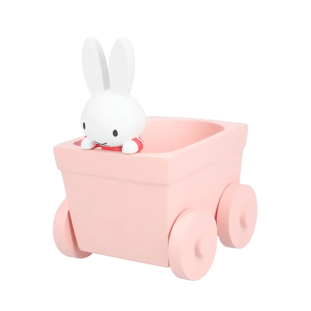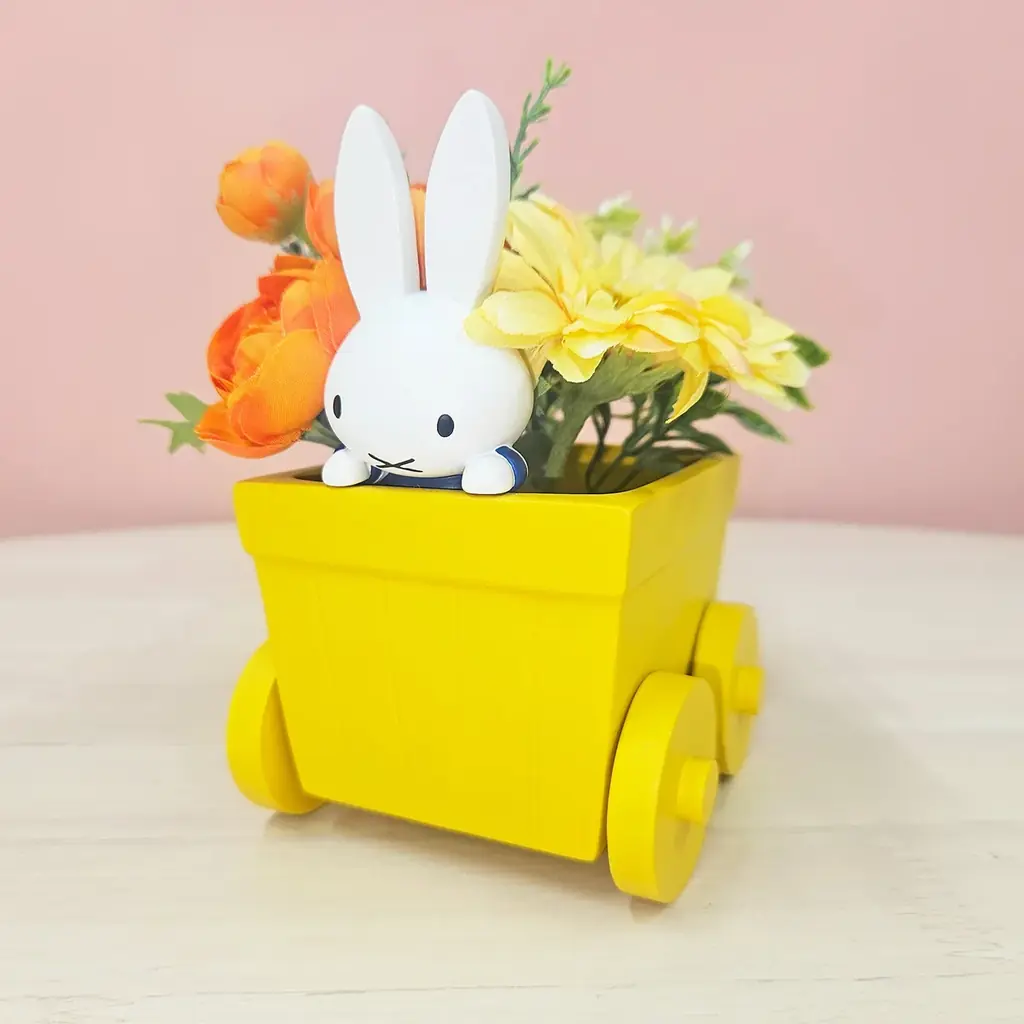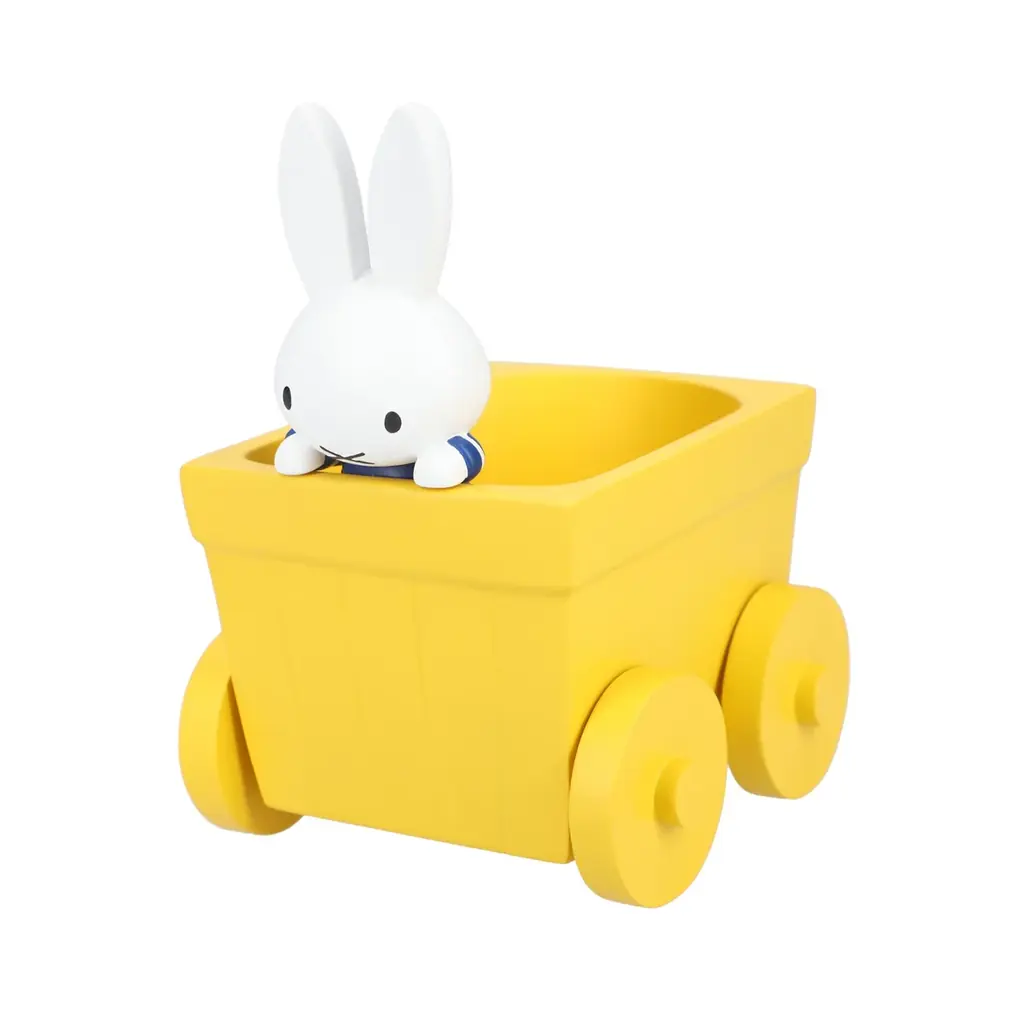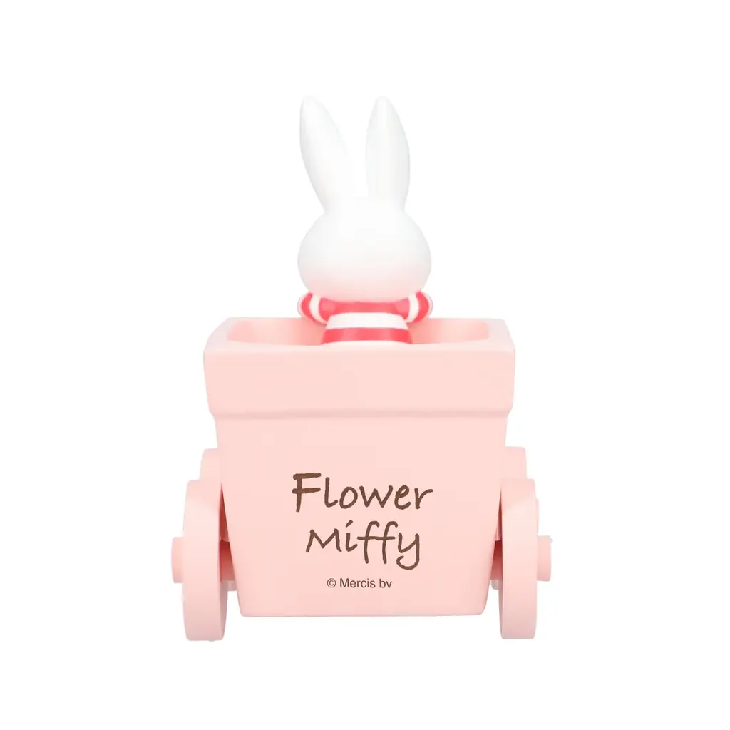 ミッフィーが車輪付きの花車からひょっこり顔を出すデザインの、両手に収まるミニプランターです。後ろ側にお花を飾ることでミッフィーが運ばれているように見える仕掛けになっており、花を飾った後は小物入れとしても利用できます。