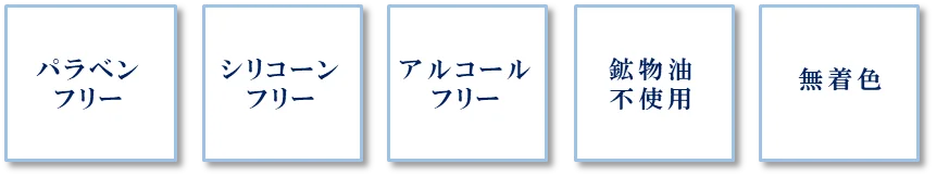 また、肌へのやさしさに配慮した5つのフリー処方を採用しており、大人の肌に配慮した処方設計がされています(プレスリリースでは5つのフリー処方を導入と表記)。