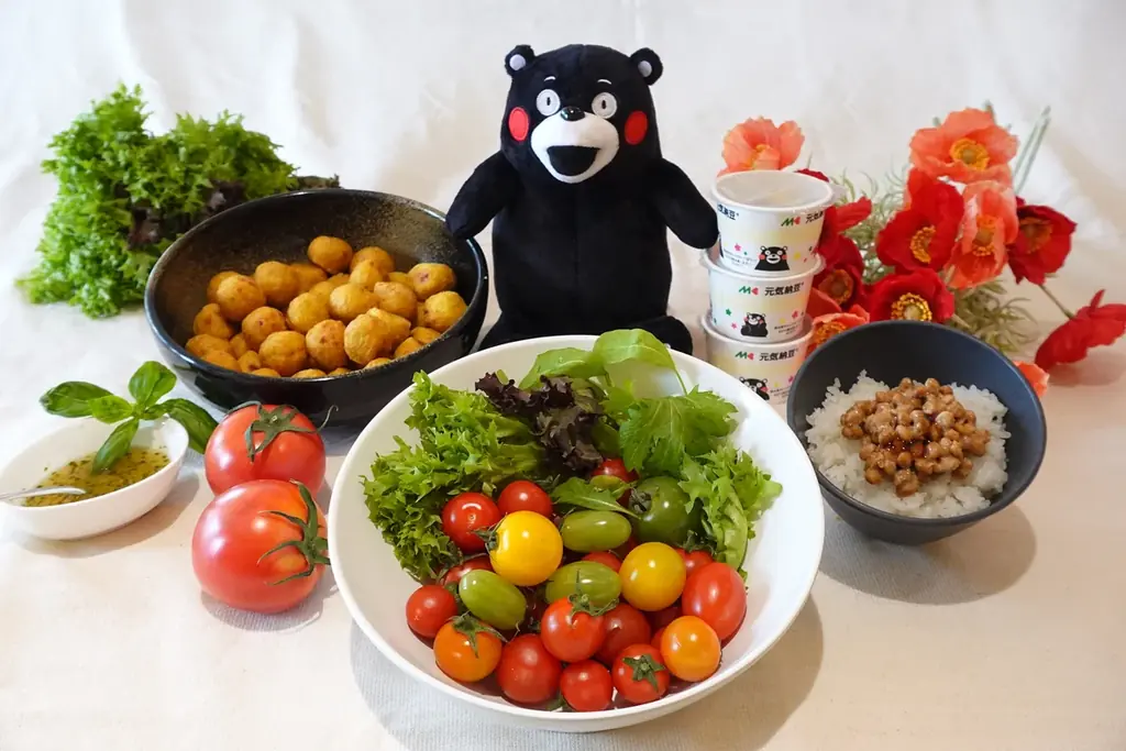 - パッケージにくまモンが入った、熊本でおなじみの納豆を朝の栄養補給として提供します。