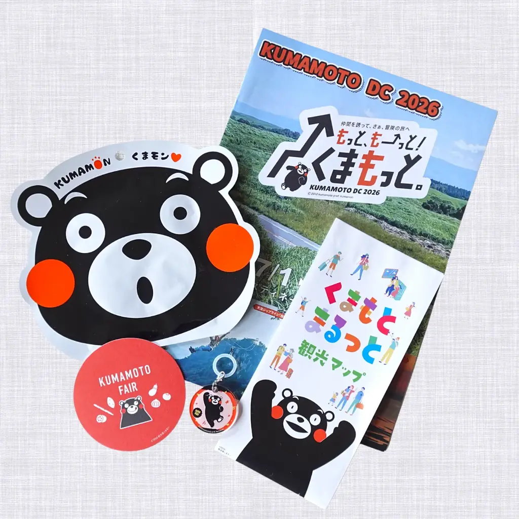 | 宿泊特典 | 限定目印チャーム(非売品・3種ランダム)、コースター(4色ランダム)、くまモンのフェイスマスク、観光パンフレット(3種)、朝食 |