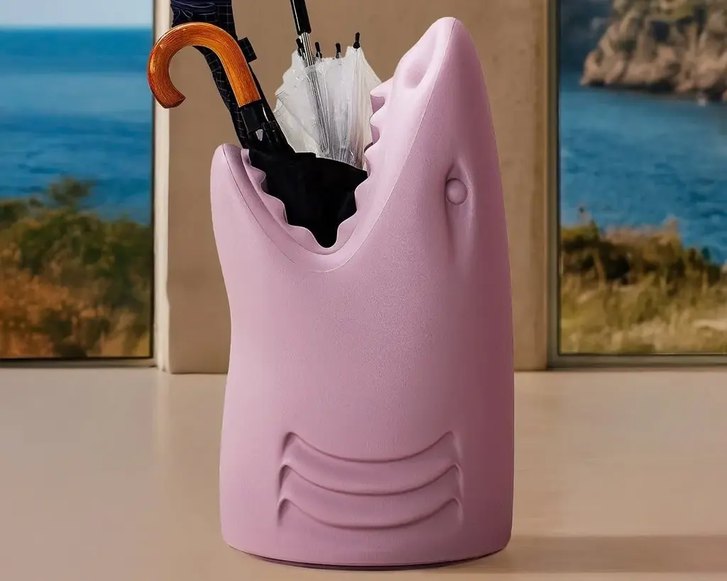 Studio Jobによる「キラー」シリーズは、サメをモチーフにしたユニークなコレクションです。従来の凶暴なイメージを和らげ、日常の小物を守る存在として再解釈されています。