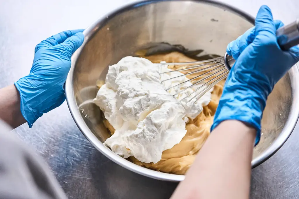 パイの食感をいちばんおいしい状態で味わってもらうため、注文を受けてから一つひとつ丁寧にクリームを詰める方式を採用しています。これにより、焼きたてのサクサク感と、クリームのなめらかさを同時に実現しています。