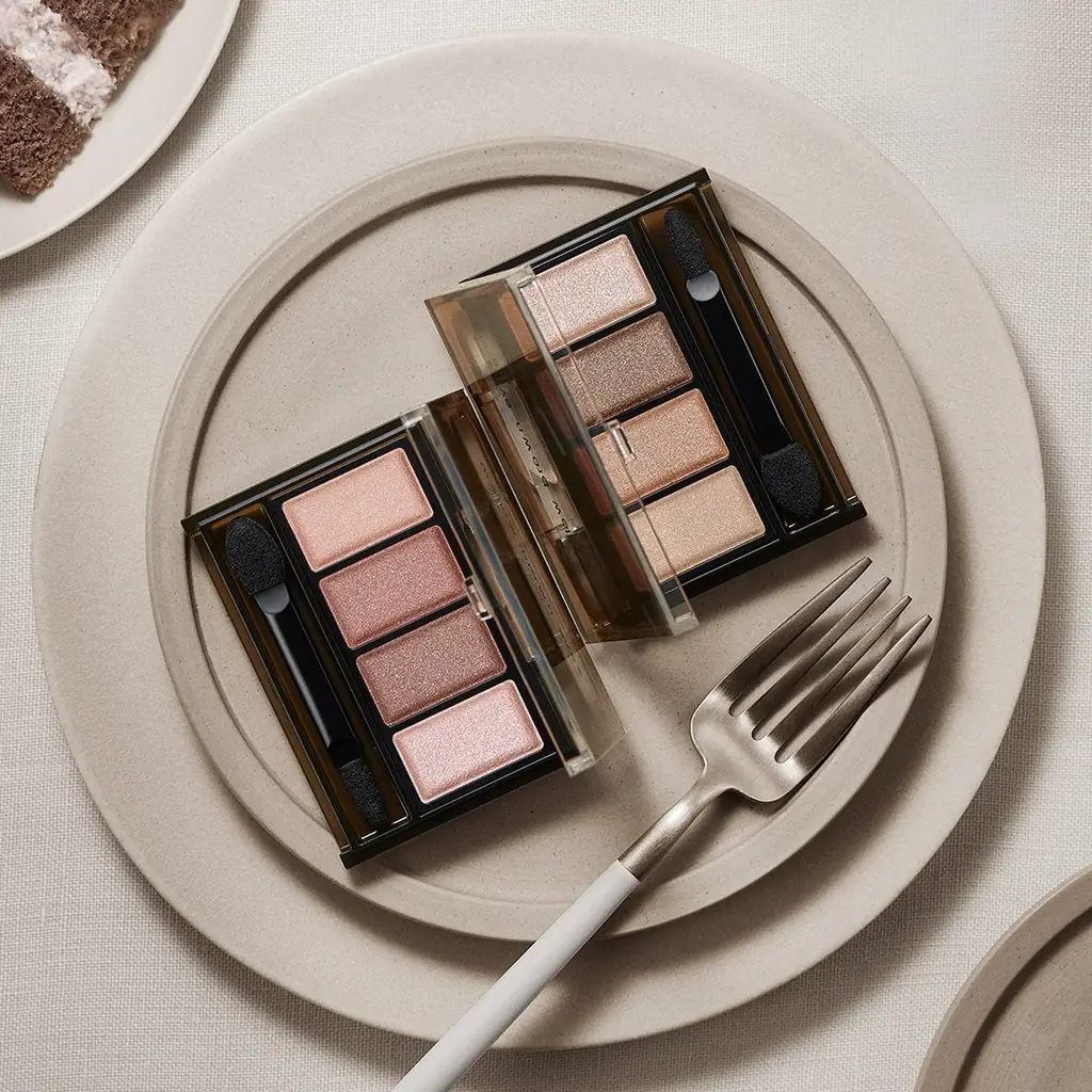 新色はいずれもブラウンベースだが、ピンク寄りとグレージュ寄りで印象が分かれるため、日常使いからやわらかなニュアンスメイク、落ち着いた陰影を欲するシーンまで幅広く対応する。