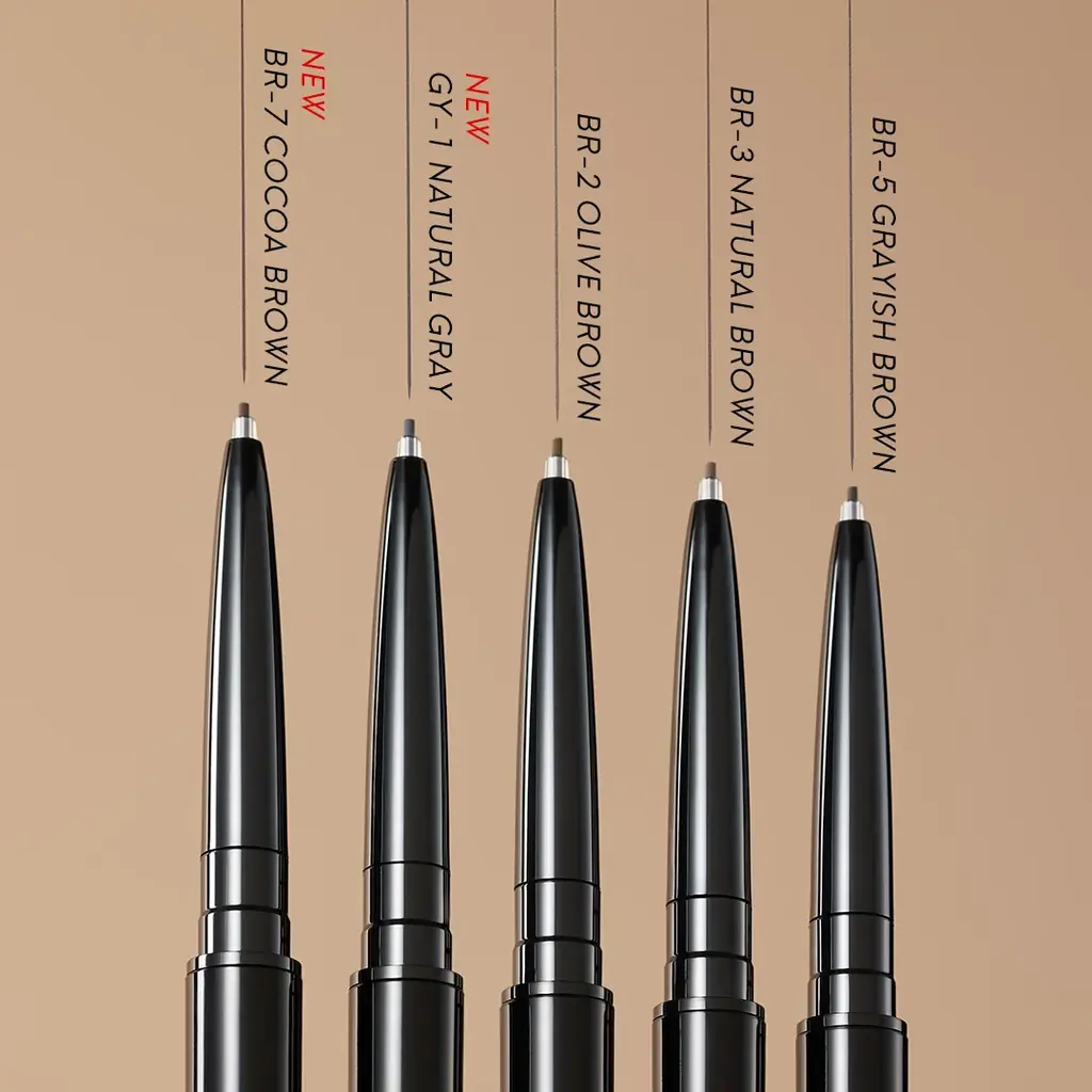 0.8mmという細さは、短いストロークで繊細な毛流れを一本一本描けるため、薄眉や毛がまばらな部分の補正に向いている。ダーク系の新色は、黒髪ユーザーや落ち着いた印象を求める場合に選びやすい。