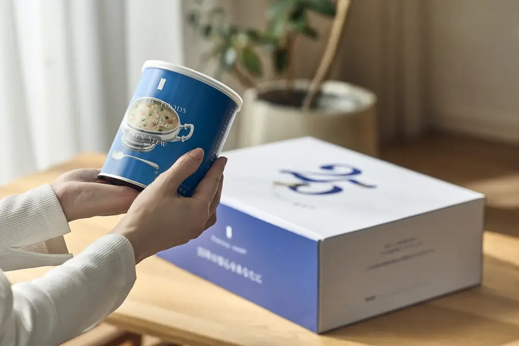 サバイバルフーズのギフトボックスは、缶詰タイプの小缶を組み合わせた商品構成で、保存期間は未開封・常温保存で25年です。ラインアップは主に2缶入り(約5食相当)と6缶入り(約15食相当)の2種類で、バリエーションによって価格が異なります。
