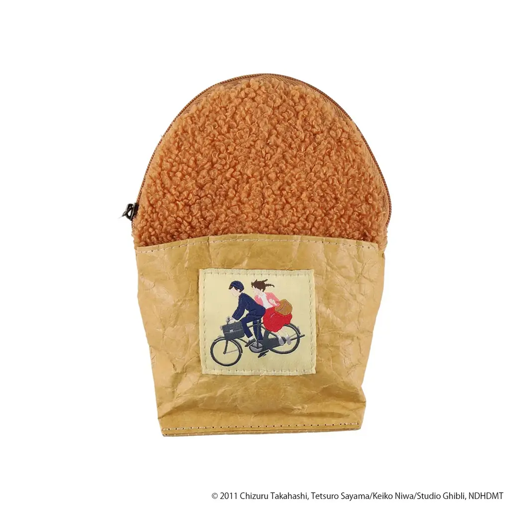 特 徴:作中に登場するコロッケをモチーフにしたポーチ。衣はパイル生地の起毛で再現し、包み紙部分は紙素材。織りネームには自転車で坂を下る海と俊のワンシーンや、お肉屋さんの店頭にあった値札のデザインを採用。