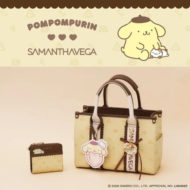株式会社サマンサタバサジャパンリミテッドが展開するブランドSAMANTHAVEGA(サマンサベガ)は、コンセプト「GIRL, Lady It’s me 今しかないこの時を自分らしく全力で。サマンサベガと一緒に。」のもと、2026年4月16日付の発表でサンリオのキャラクターポムポムプリンとのコラボコレクションを発表しました。今回のコラボはバッグ・折財布・バッグチャームの全3アイテムで構成され、日常使いに適したデザインと特別なモチーフが組み合わされています。