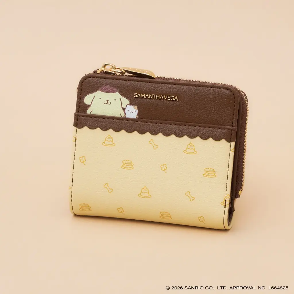 サマンサベガの既存の人気シリーズであるロゴテープシリーズをベースに、ポムポムプリンの世界観を落とし込んでいます。日常使いのしやすさを重視したカラーリングと、細部に施されたモチーフがポイントです。