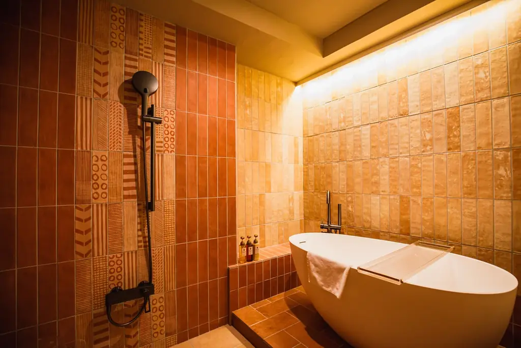 館内はモダンな美しさと砂漠の静寂を融合させたインテリアで統一され、エントランスやラウンジ、客室すべてが「砂の映画館」を表現する空間です。ラウンジにはレコードプレーヤーとMarshallスピーカーを設置し、スタッフが日替わりで選ぶ名作映画のサウンドトラックが流れる演出が施されます。