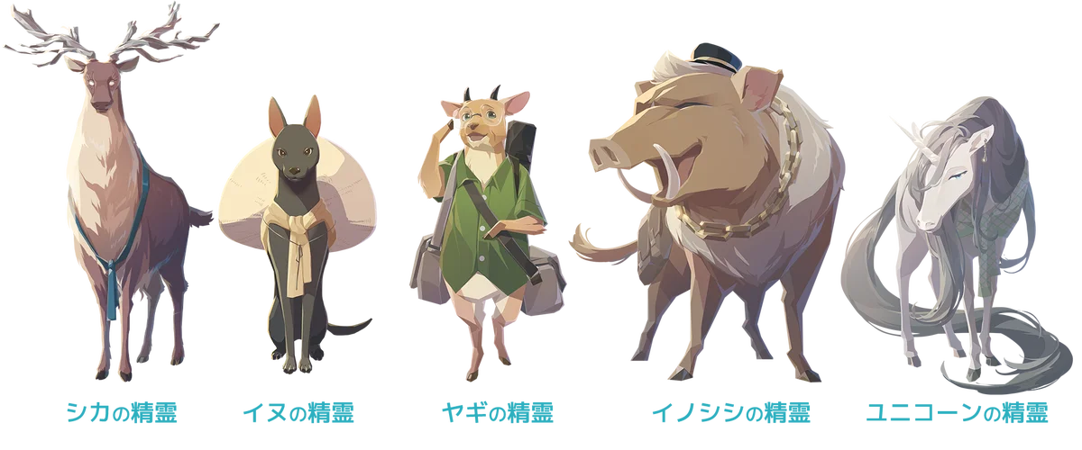 発売に合わせて、旅の途中で出会う動物の姿をした「神霊」たちのうち、これまで未公開だった個体の詳細が公開されました。神霊はそれぞれ性格や置かれた状況が異なり、彼らとの交流がユージンの手がかりとなっていきます。