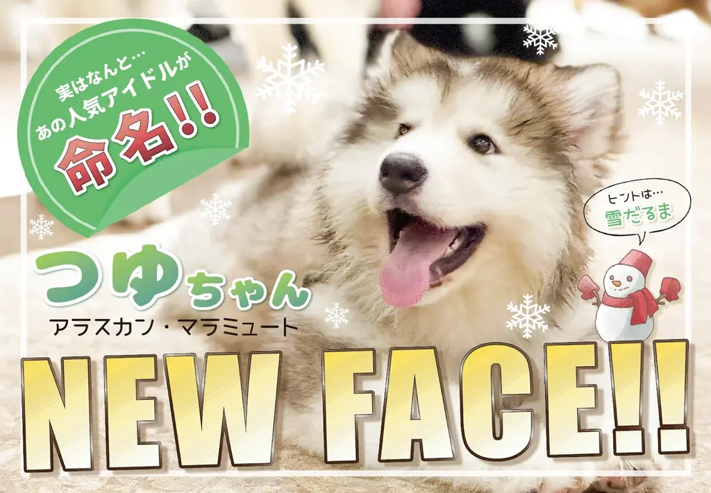 - 場所:シーサイドモール5階。内容:全天候型ふれあい動物園。人気アイドルが名付け親の超大型犬アラスカンマラミュートの赤ちゃん「つゆちゃん」がデビュー。現在は小さな体ですが成長し、成犬時には体重が40kg以上になる見込みです。URL:https://animeal.jp/odaiba/