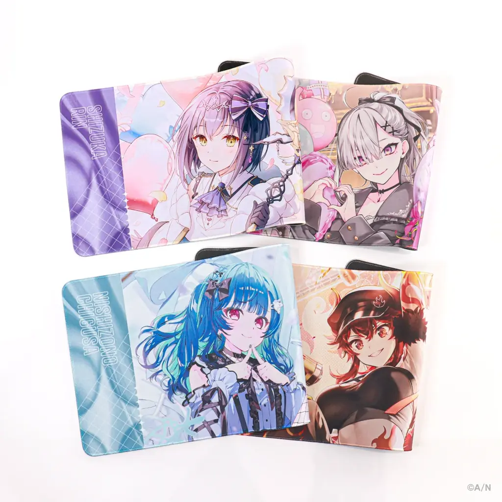 各商品はそれぞれ8種のデザイン展開で、各デザインは該当ライバーをイメージしたビジュアルを使用しています。各商品の素材やサイズはカードの取り扱いに適した規格を満たすように設計されています。