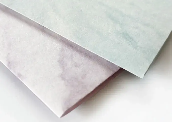 • Davinci ペーパーファイル(ポケット) 品番:DPR1497 価格:1,000円(税込1,100円) 本体サイズ:W76 × H126mm(開いた状態 W141 × H126mm) 入数:2枚(ブルー1枚、パープル1枚)