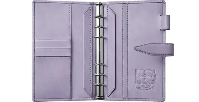 • Davinci ペーパーファイル(mini5) 品番:DMR1498 価格:900円(税込990円) 本体サイズ:W62 × H105mm(開いた状態 W114 × H105mm) 入数:2枚(ブルー1枚、パープル1枚)
