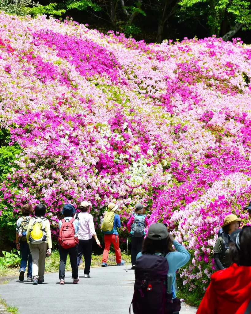 ハイキングを通じて花と新緑に包まれながら山歩きを楽しめるため、日常から離れたゆったりとした時間が過ごせます。足元に広がるツツジの中を歩くことによって、視覚的にも身体的にも春の季節感を強く感じられる点がこの場の魅力です。