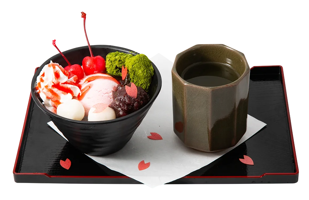 桜が舞い散る季節をイメージした和風スイーツです。あんみつの構成要素を桜フレーバーや彩りで変化させ、春らしい味わいと見た目を重視した一品として提示されています。