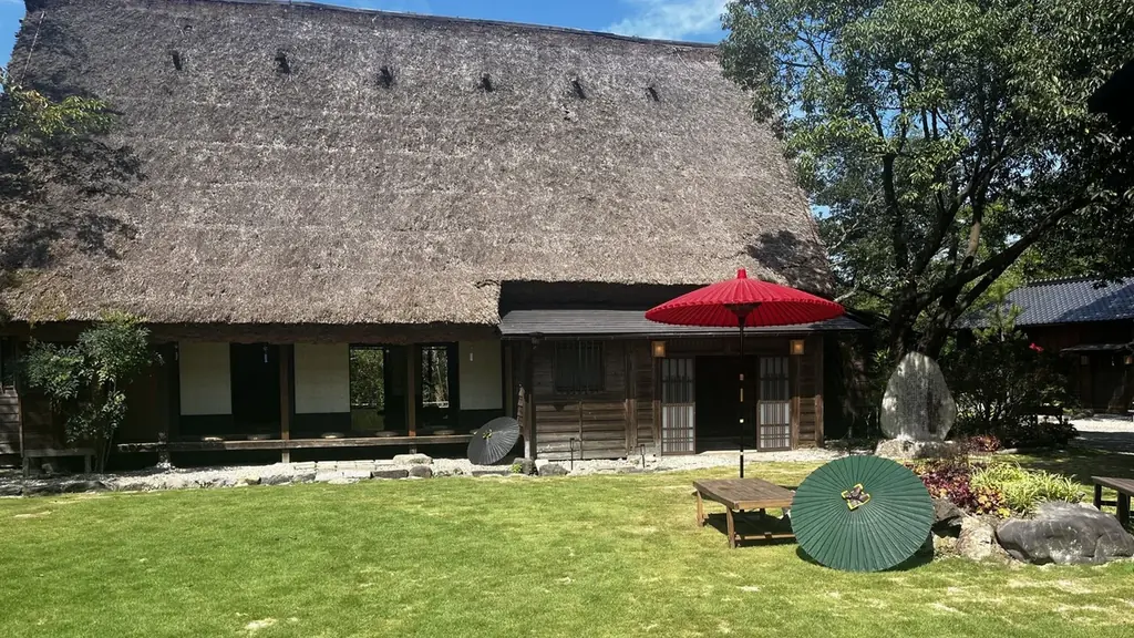 園内には合掌造りの家やワークショップエリアが設けられており、日本の古き日常文化を感じながら自然に触れることができます。施設全体が新緑の季節に映える設計で、写真撮影や散策を楽しむことができます。