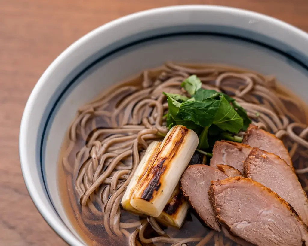 温かいそばとして提供され、出汁の風味と鴨肉のコクのバランスが設計されています。
