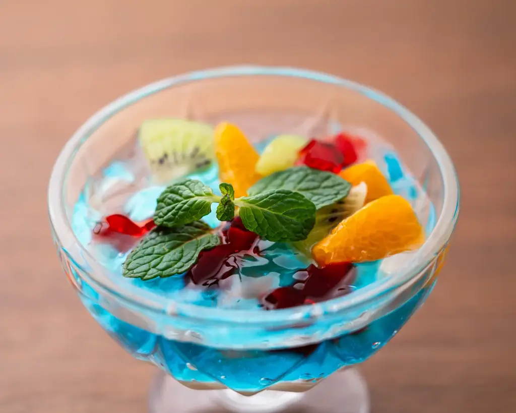 伊藤若冲の動植物画や琳派の装飾的美学をグラス内で表現した一品。透き通るゼリーに泳ぐ金魚の躍動感を再現した、食べるアートとして設計されています。