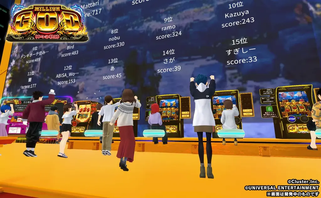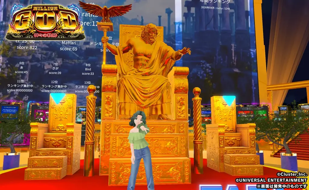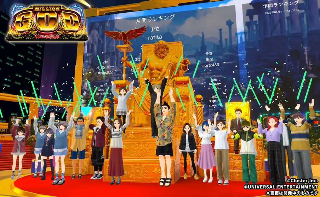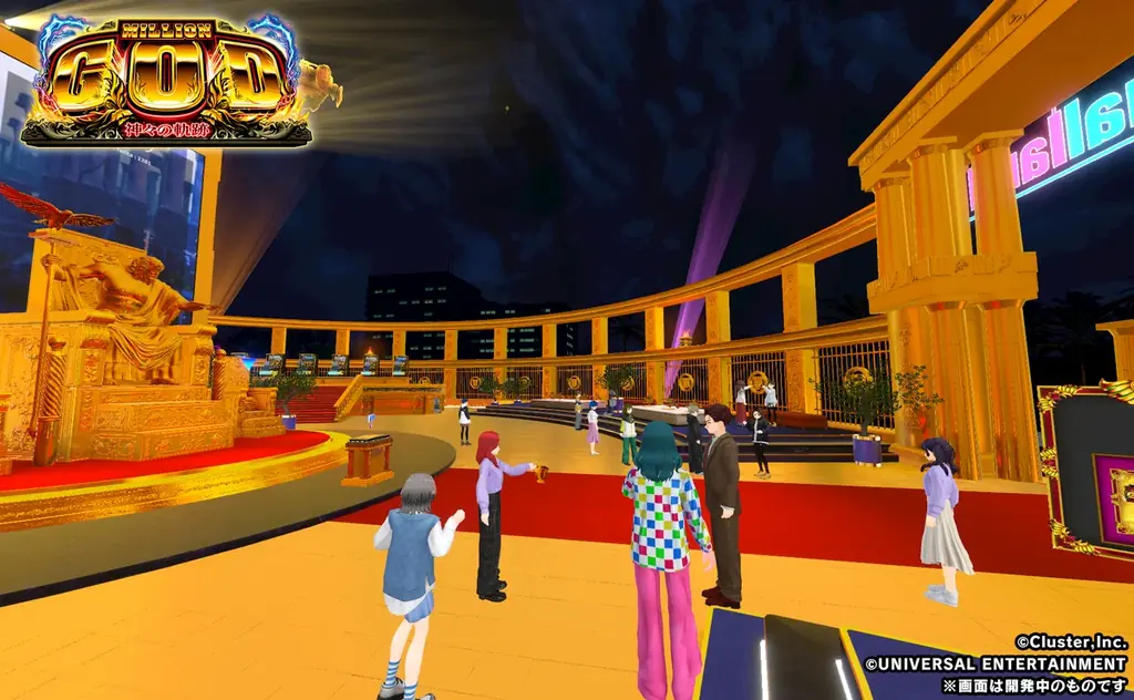 本プロジェクトは、ユニバーサルエンターテインメントのコンテンツ世界観を、メタバースプラットフォーム「cluster」限定で提供するもので、遊技機業界としては初めての常設ワールドとして展開されます。公開後は365日いつでもアクセス可能な設計です。