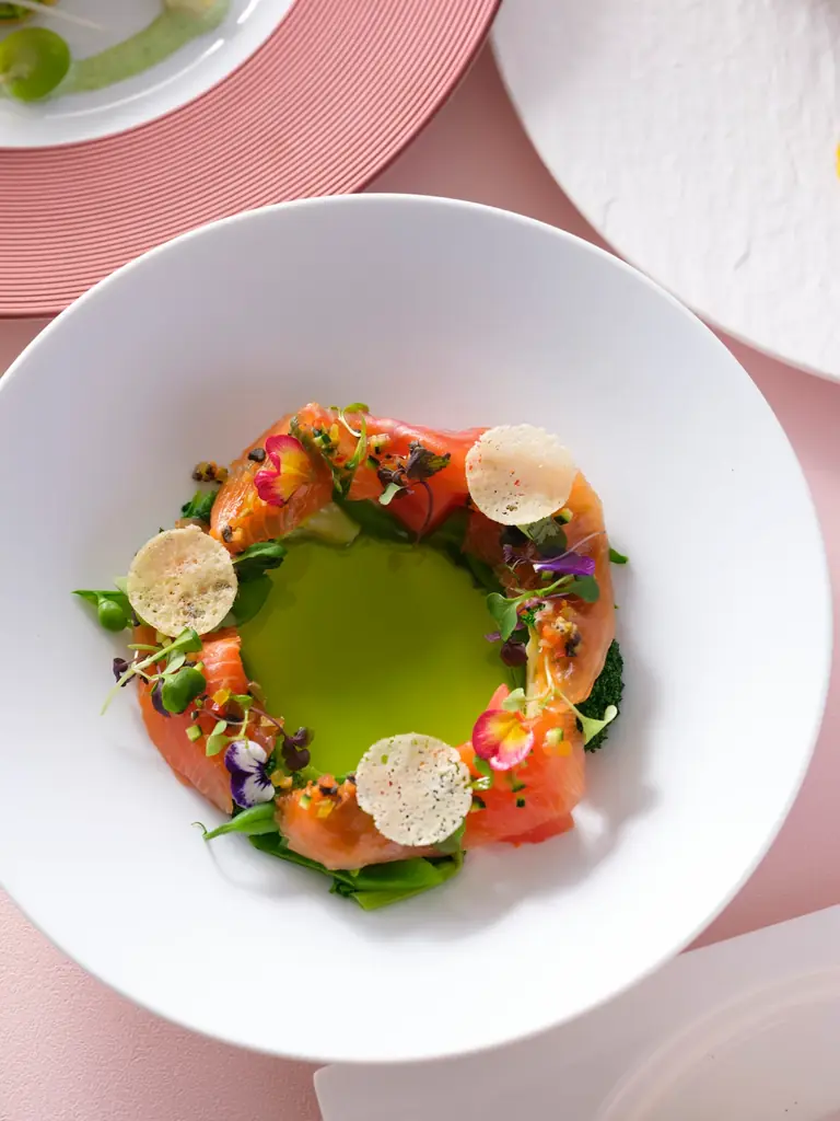 オールデイダイニング「HARBELLA」では、母の日限定のギフト付き特別コースを用意しています。料理は長崎県産素材を中心にフレンチの技法で仕上げる「長崎フレンチ」を軸に構成され、今季のテーマは「長崎爛漫(らんまん)」です。