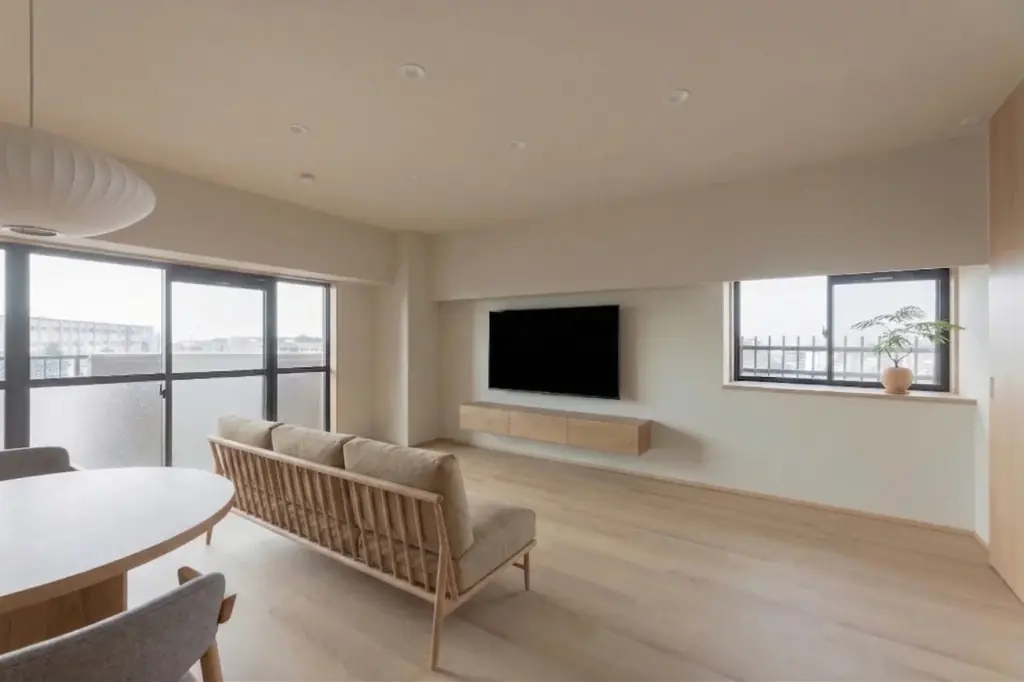 今回見学できる住まいは、築29年のマンションを3LDKから2LDK+ウォークインクローゼット(WIC)へと間取り変更した事例です。リビング・ダイニング・キッチン(LDK)を約22畳の大空間にまとめ、家族が自然に集まれるのびやかな居室を実現しています。写真だけでは伝わりにくい素材の質感や動線の使い勝手を現地で実際に確かめられる点が、本見学会の大きな特徴です。
