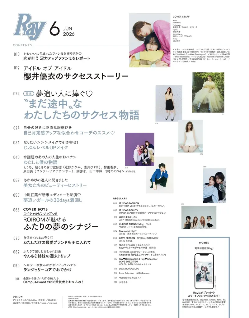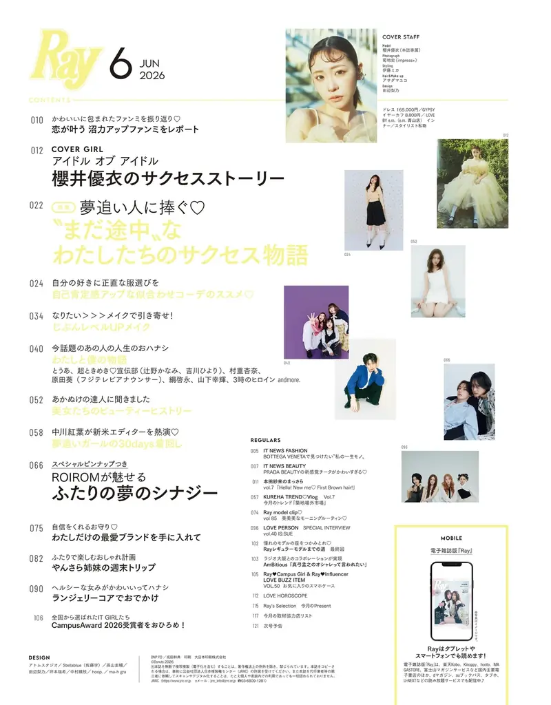 『Ray』2026年6月号は4月23日(木)発売!通常版表紙は専属モデルの櫻井優衣(FRUITS ZIPPER)、特別版表紙は『Ray』初登場のROIROM! 画像 3